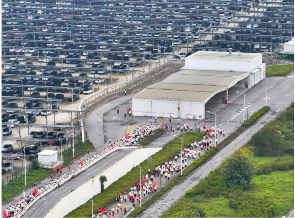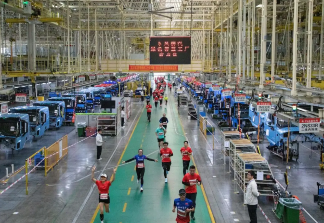 Umbono wokuqala emzileni kwaba uchungechunge lwezimoto zabagibeli bezentengiselwano ezingu-300 zase-Liuzhou, ezakha “udrako” omude ukuze abingelele ngokufudumele umhlanganyeli ngamunye. Abagijimi badlule ezindaweni ezibalulekile njengeshabhu yokuhlanganisa izimoto zabagibeli, indawo yokusebenzela yokuhlanganisa izimoto zezentengiselwano, nomgwaqo wokuhlola izimoto. Ingxenye yesifundo yaze yadlula ngisho nasezinkundleni zokucobelelana ngolwazi, izungezwe imishini emide, imishini ehlakaniphile, nemigqa yokukhiqiza. Lokhu kuvumele ababambiqhaza ukuthi bazizwele amandla amangalisayo obuchwepheshe kanye nezimboni eduze.